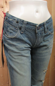 尖ったバックフラップ、ローダウン気味のバックポケットが特徴!