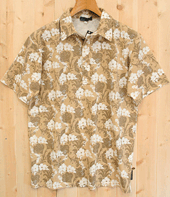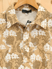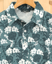 粗野感のあるスラブ素材に花のモチーフを全面にプリントしたポロシャツ