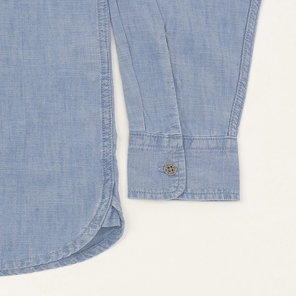 春先の定番でもあるシャンブレー生地なのでカジュアルにジーンズと合わるのは勿論、