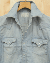完売御礼 ウエスターンシャツ 7オンスデニム 綿100% 74)ライトロックユーズド 84)ミッドロックユーズド サイズ=M,L 税込み価格ー¥8.400− 本体価格=¥8.000