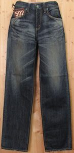 502をベースに股上を約1センチ下げ、腰穿きにも対応出来るように若干脇線を立たせたレギュラーフィットストレート。
