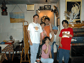 赤いTシャツと御髭は、ここのマスターです。