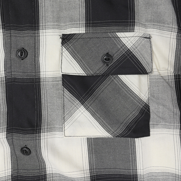 フラップ付き胸ポケットなどビンテージワークシャツのディテールを忠実に