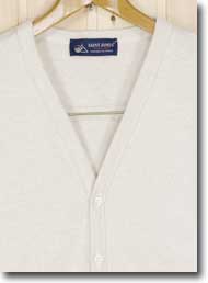 ベーシックなカラー、7つ並んだボタンと浅めのVネックの開きは、