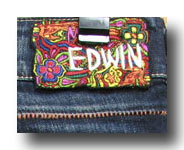 見ての通りラベルは、サイケ調の刺繍ラベル スラップポケットに、デフォルメのボタン、リベット等