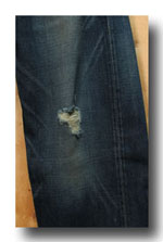 焼きいれリベット仕様、14oz Denim にリアルなユーズド加工 両面BIG E タブ 、ビンテージデニム100%