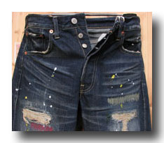 焼き入れリベット、14oz Denim の濃い目にリアルなユーズドヒゲ加工